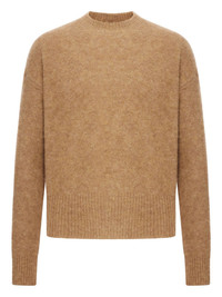 logo-detail crew-neck sweater Highlights - Camel brown - Alpaca wool - Ribbed knit - Long sleeves - Ami signature logo - Straight hem Made in Italy Composition Alpaca Wool 100% Washing instructions Read Manufacturer Guidelines
