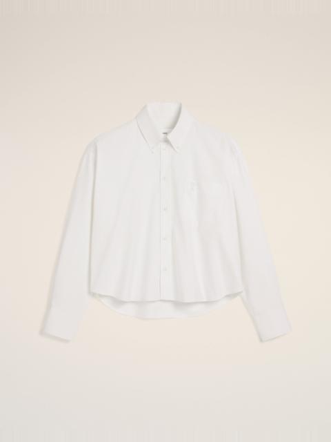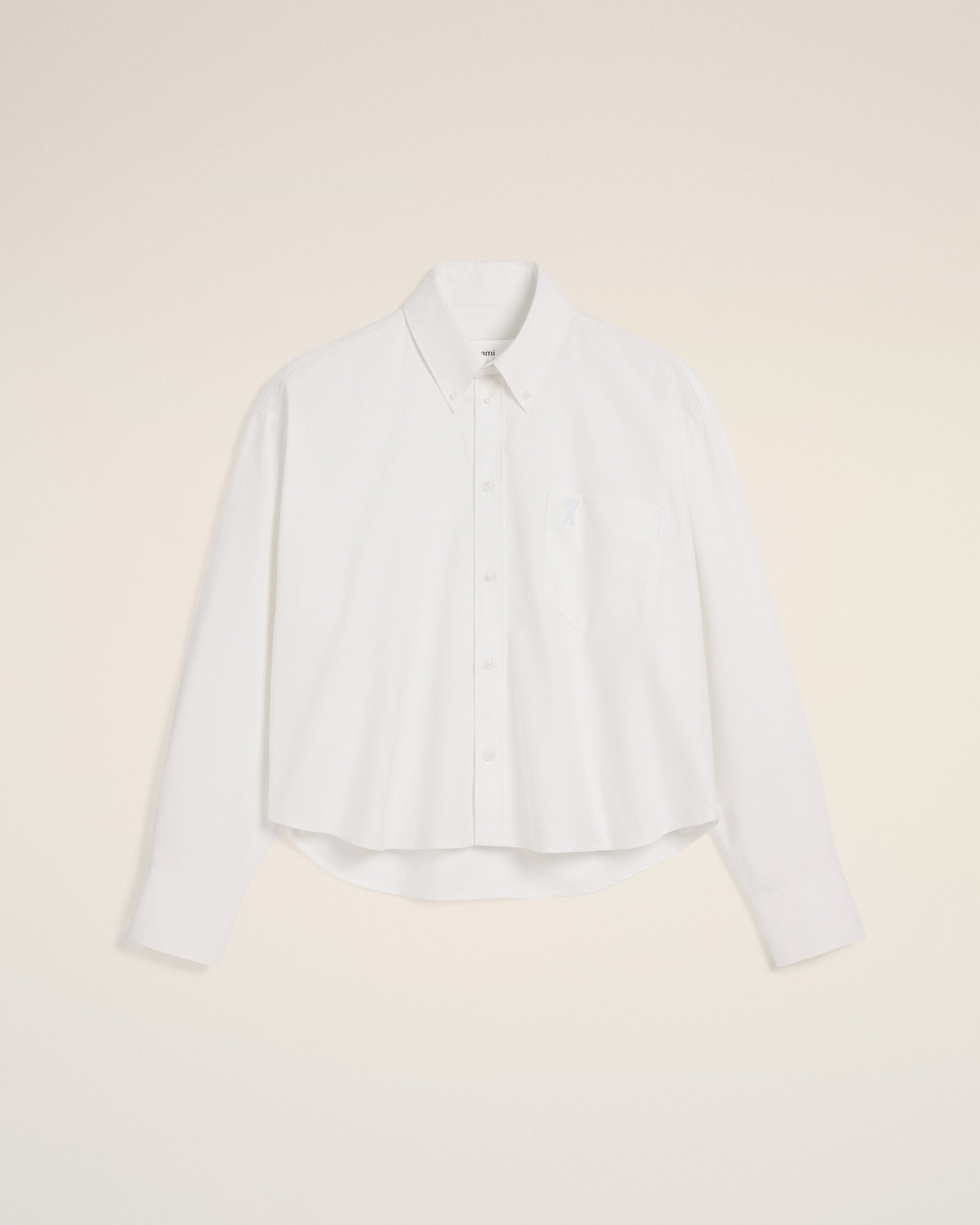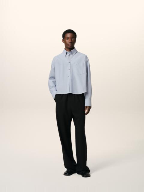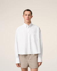 Button-down cropped oversized shirt in cotton oxford. Cropped oversized fit Unisex product 58 cm center back length (size XS) 66 cm center back length (size M) Embossed and topstitched Ami de Coeur on the pocket Patch pocket Button-down collar Buttoned tab on frond and cuffs Mother-of-pearl buttons Made in Portugal (with love) REF: USH123.CO0031.168 SIZE & FIT This style is unisex. For man, take your normal size. For woman, take one size down than your usual size. Man model is 1m83 / 6'0" and is wearing a size M. Woman model is 1m78 / 5'10" and is wearing a size XS. COMPOSITION & CARE GUIDE 100% Cotton Chlorine prohibited Do not tumble dry Dry clean gentle Cool iron Machine wash at 30°C gentle