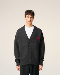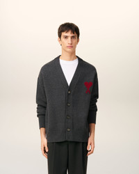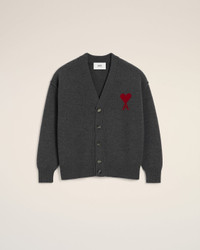 Cardigan in felted merino wool knit. Unisex product "ami" engraved horn buttons Intarsia knitted Ami de Coeur on the chest Inside out seams Jersey stitch 64 cm center back length (size M) 58 cm center back length (size XS) Made in Portugal (with love) REF: UKC367.018.084 SIZE & FIT This style is unisex. For man, take your normal size. For woman, take one size down than your usual size. Man model is 188 cm / 6"2 and is wearing a size M. Woman model is 179 cm / 5"10 and is wearing a size XS. COMPOSITION & CARE GUIDE Main Material : 100% Wool Hand wash low temperature Chlorine prohibited Do not tumble dry Dry flat Cool iron Dry clean possible Contains non-textile parts of animal origin