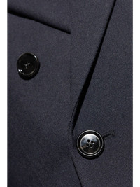 double-breasted blazer Highlights - Navy blue - Virgin wool - Notched lapels - Double-breasted button fastening - Two side flap pockets - Chest welt pocket - Long sleeves - Buttoned cuffs - Straight hem Imported Composition Outer: Virgin Wool 100% Lining: Cotton 50%, Polyester 50%