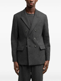 double-breasted wool blazer Highlights - Grey - Wool - Vertical stripe pattern - Peak lapels - Chest welt pocket - Two side flap pockets - Double-breasted button fastening - Long sleeves - Buttoned cuffs - English rear vents Imported Composition Wool 100%