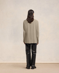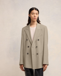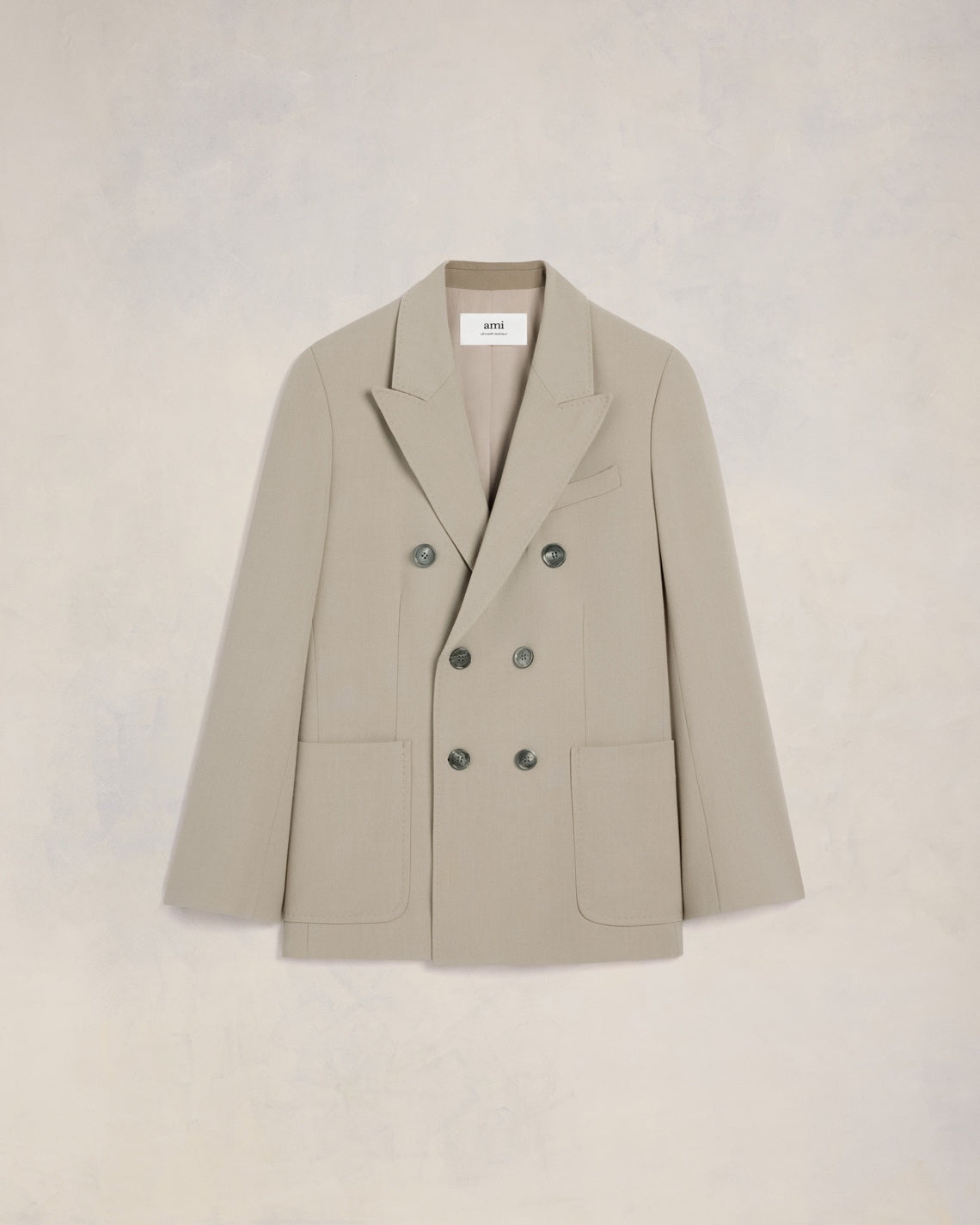 Double breasted jacket in wool and viscose twill. Adjusted fit 78 cm center back length (size 48) Fully lined Peak collar Inside pockets Chest welt pocket Patch pockets Buttoned cuffs Horn buttons Made in Romania (with love) REF : HBV207.VI0007.2811 SIZE & FIT Fits true to size. Take your normal size. COMPOSITION & CARE GUIDE 55% Viscose, 45% New Wool Do not wash Chlorine prohibited Do not tumble dry Cool iron Dry clean petroleum solvent only on a gentle process