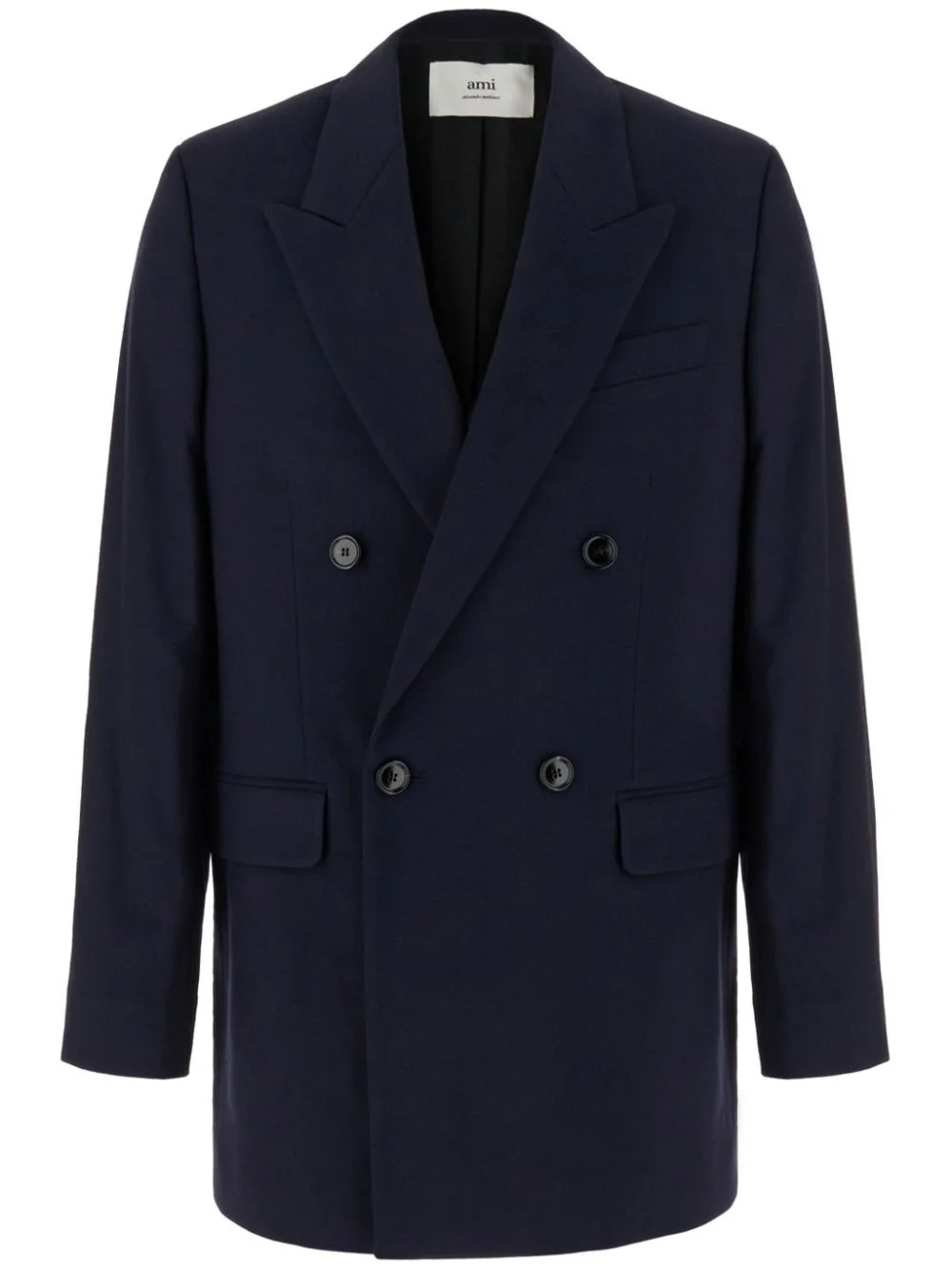 double-breasted virgin-wool blazer Highlights - Midnight blue - Virgin wool - Peak lapels - Double-breasted button fastening - Long sleeves - Buttoned cuffs - Chest welt pocket - Two front flap pockets - Central rear vent - Straight hem - Cotton blend lining Imported Composition Virgin Wool 100% Washing instructions Dry Clean Only