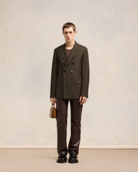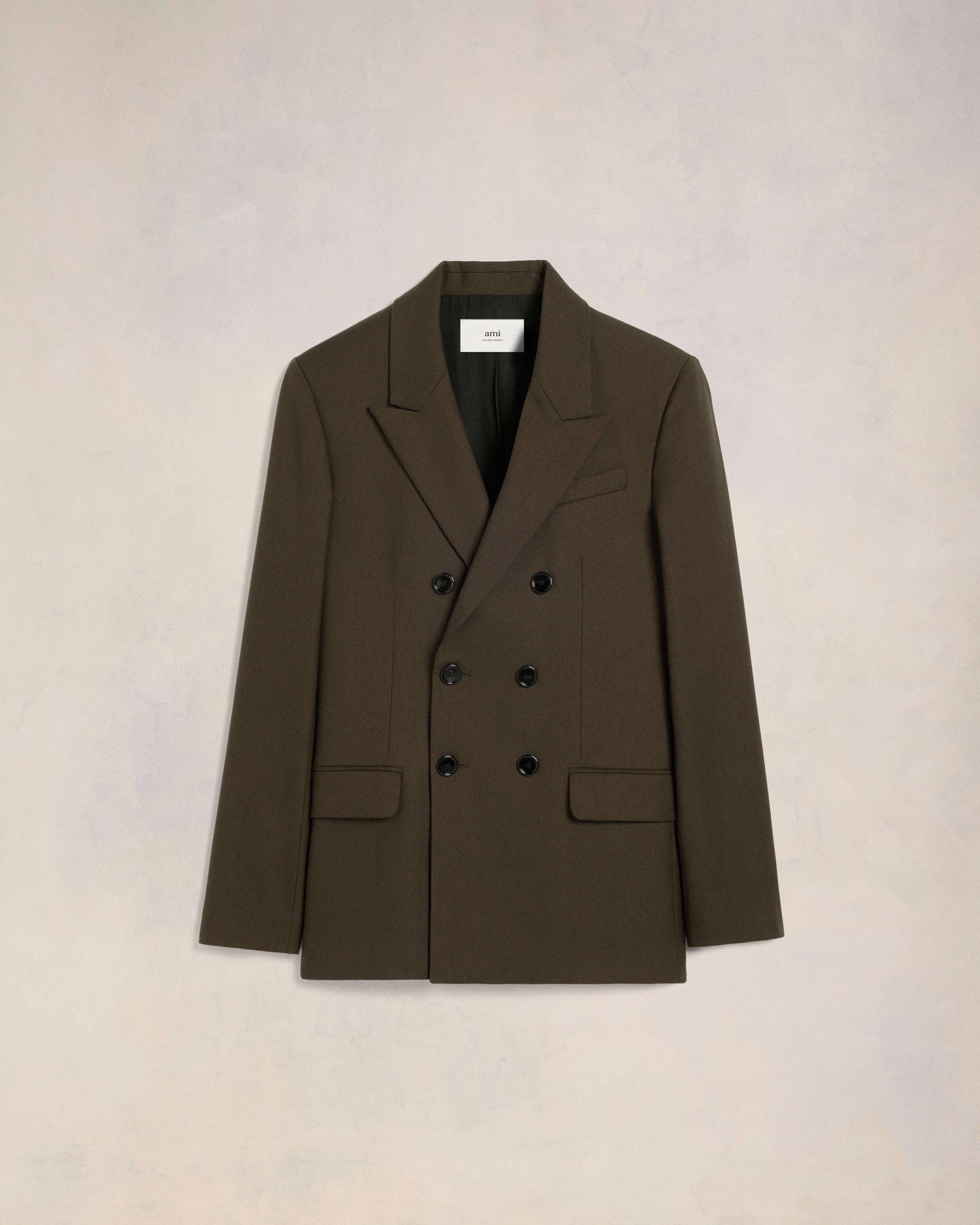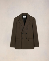 Double breasted jacket in soft wool gabardine. Regular fit 77 cm center back length (size 48) Lined Double breasted Peak collar Welt chest pocket Flap pockets Inside pockets Double slits on the back Bottom sleeves buttoned Horn buttons Made in Romania (with love) REF : HBV217.WV0026.221 SIZE & FIT Fits true to size. Take your normal size. Model is 1m83 / 6'0" and is wearing a size 48. COMPOSITION & CARE GUIDE 100% New Wool Do not wash Chlorine prohibited Do not tumble dry Cool iron Dry clean petroleum solvent only on a gentle process