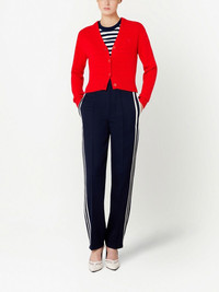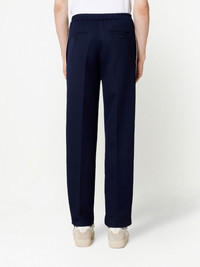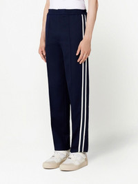 stripe-detail straight-leg trousers blue/white virgin wool side stripe detailing elasticated waistband two side inset pockets two rear button-fastening jetted pockets straight leg When buying this unisex item, keep in mind that it is graded in standard men's sizing. Imported Composition Outer: Polyester 100%, Virgin Wool 100% Lining: Polyester 100%