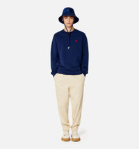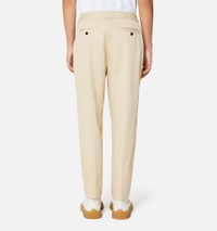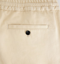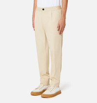 Product Description mid-rise tapered trousers from AMI Paris featuring vanilla, cotton, elasticated waistband, button fastening, two side slit pockets and tapered leg. Elasticated waist in cotton gabardine. - Cropped leg - Elasticated button-opening belt - Internal waist drawstring - Front pleat - Zipped fly - 18 cm leg opening - Ami engraved black horn buttons - Made in Romania (with love) REF HTR206.CO0020709 Size & Fit Fits true to size. Take your normal size. Materials & Care Instructions Main Fabric: 100% Cotton. Pocket Lining: 65% Polyester, 35% Cotton. Do not wash Do not bleach Do not tumble dry Cool iron Dry clean gentle