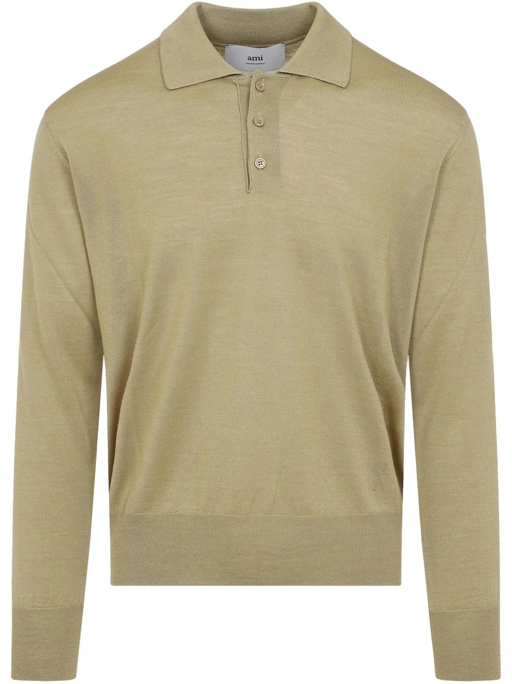 fine-knit polo shirt Highlights - Light brown - Short front button fastening - Long sleeves - Ribbed cuffs and hem Imported Composition Wool 100%