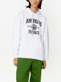 logo-print drawstring hoodie AMI Paris draws inspiration from classic collegiate styles to present this hoodie. Made from soft cotton and fitted with a comfortable double-layered hood, this white design is emblazoned at the front with the brand's logo and provenance. Highlights - White/black - Cotton - Logo print to the front - Drawstring hood - Long sleeves - Front pouch pocket - Ribbed cuffs and hem - When buying this unisex item, keep in mind that it is graded in standard men's sizing. Imported Composition Cotton 100%