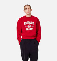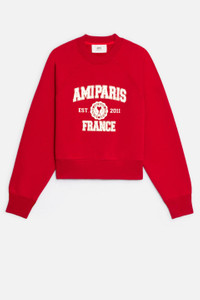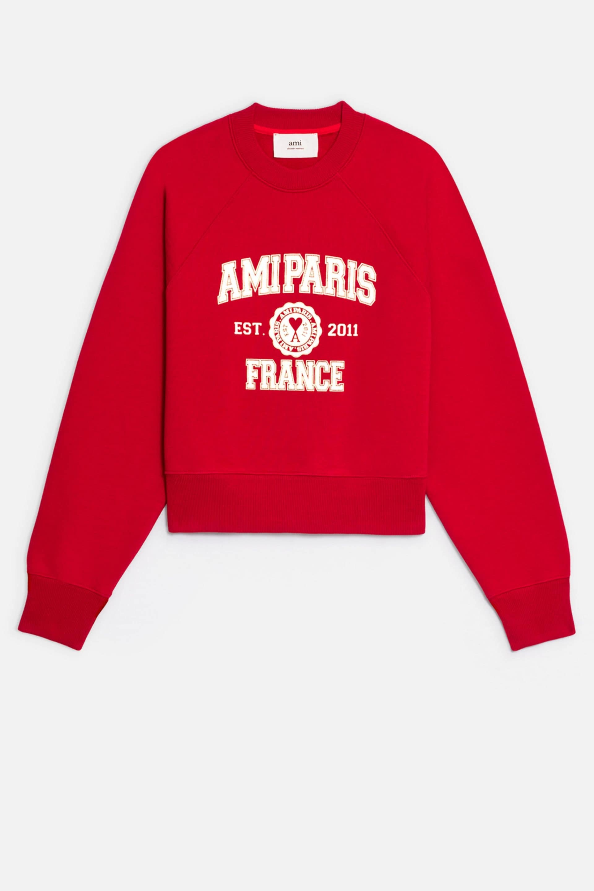 Product Description logo-print organic-cotton sweatshirt from AMI Paris featuring red, white, organic cotton, logo print to the front, crew neck, long raglan sleeves and ribbed trim. Conscious: This item is made from at least 50% organic materials. When buying this unisex item, keep in mind that it is graded in standard men's sizing.. Sweatshirt in organic cotton fleece. - Boxy fit - Unisex product - 60 cm middle back length (M size) - 53 cm middle back length (XS size) - Print Ami Paris France - Tonal AMI embroidery under back neckline - Raglan sleeves REF USW010.747600 Size & Fit This style is unisex. For man, take your normal size. For woman, take one size down than your usual size. Materials & Care Instructions Machine wash at 30°C gentle Do not bleach Do not tumble dry Cool iron Do not dry clean reshape whilst damp Wash inside out Iron inside out Wash with similar colours