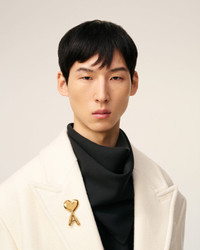 Ami de Coeur hammered brooch in gold plated brass. Unisex product Galvanization: Aged gold Engraved inside "ami" bar Pin length: 4 cm Height: 5.98 cm Width: 2,55 cm Made in Italy (with love) REF: UJW424.361.902 SIZE & FIT One size. COMPOSITION & CARE GUIDE Main Material: 100% Brass Use a soft cloth for cleaning