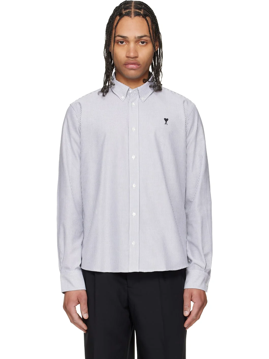 Cotton oxford cloth shirt. · Pinstripes throughout · Button-down spread collar · Button closure · Logo graphic embroidered at chest · Shirttail hem · Pleated single-button barrel cuffs · Mother-of-pearl hardware Supplier color: Noir/Blanc naturale 100% cotton. Made in Portugal 261482M192015