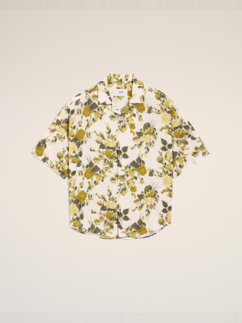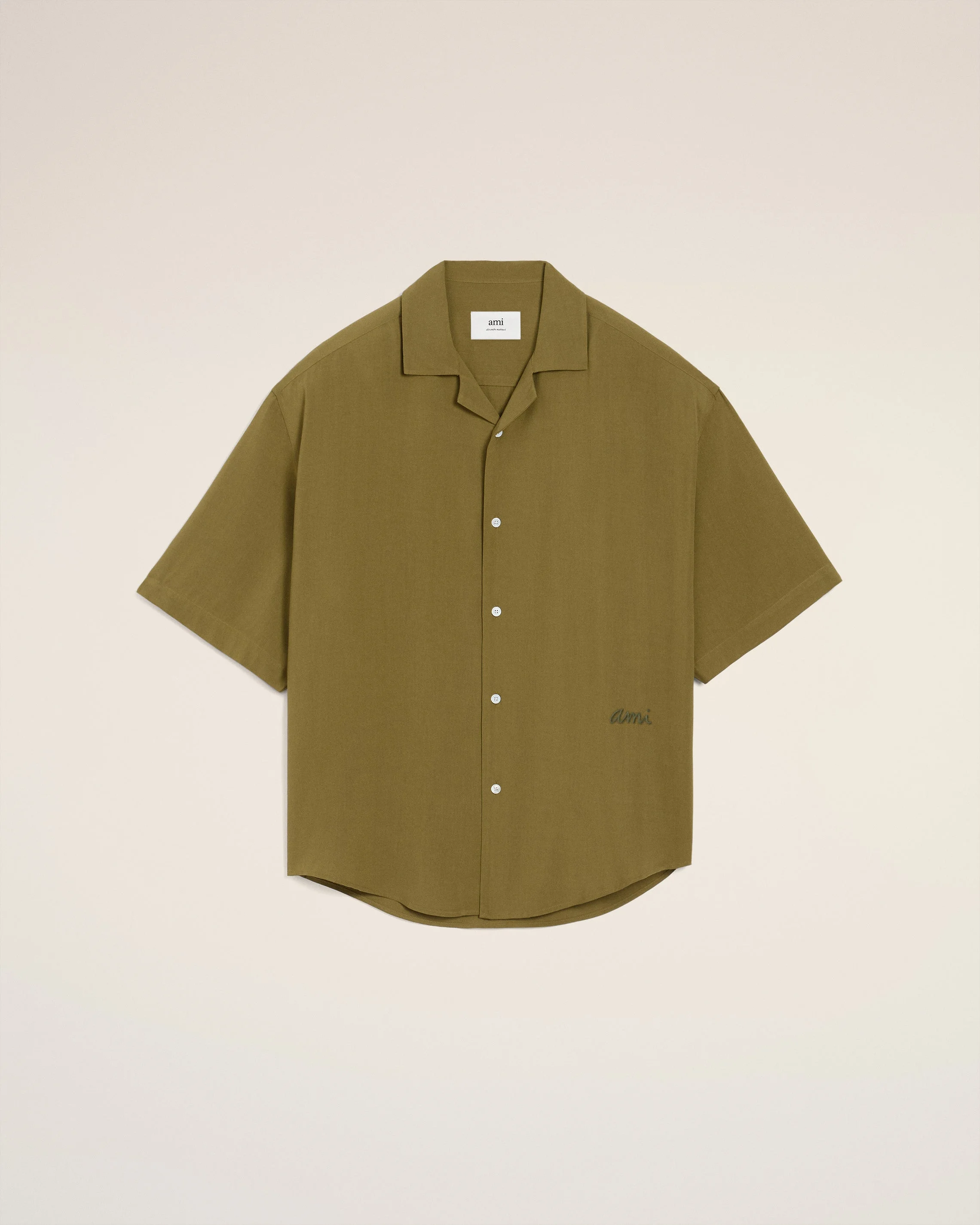 Short sleeved plain viscose shirt. Boxy fit Open collar Short sleeves Front button placket Motherof pearl buttons Tonal italic "ami" embroidery on bottom left waist Center back length : 77cm (size 40) Made in Portugal (with love) REF: HSH768.VI0036.298 SIZE & FIT This item is designed to be worn lose. Take your normal size. Model is 186 cm / 6"1 and is wearing a size 40. COMPOSITION & CARE GUIDE Main Material : 100% Viscose Chlorine prohibited Do not tumble dry Dry clean gentle Cool iron Do not wash