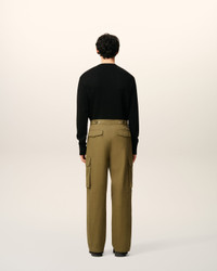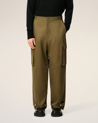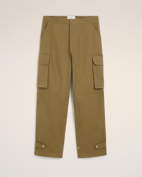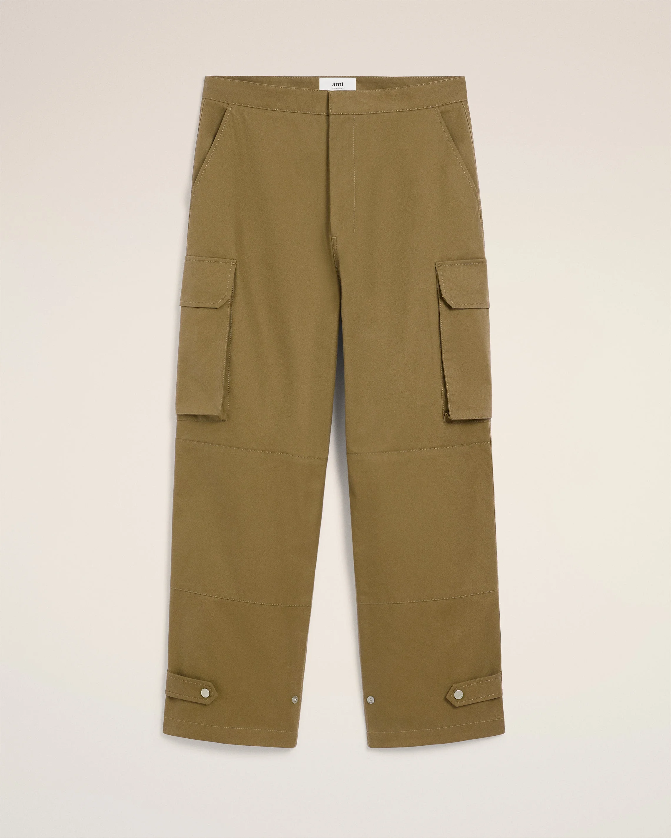 Cargo trousers in cotton gabardine. Classic waist Large leg Zipped fly Pockets with invisible snap buttons "ami alexandre mattiussi" leather label on the back Adjustable bottom legs with snap buttons Adjustable back tabs with snap buttons 27 cm bottom leg width (size M) Made in Portugal (with love) REF: HTR828.CO0132.298 SIZE & FIT Fits true to size. Take your normal size. Model is 183 cm / 6"0 and is wearing a size M. COMPOSITION & CARE GUIDE Main Material : 100% Cotton Machine wash at 30°c gentle Chlorine prohibited Do not tumble dry Cool iron Dry clean possible Contains non-textile parts of animal origin