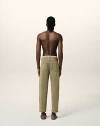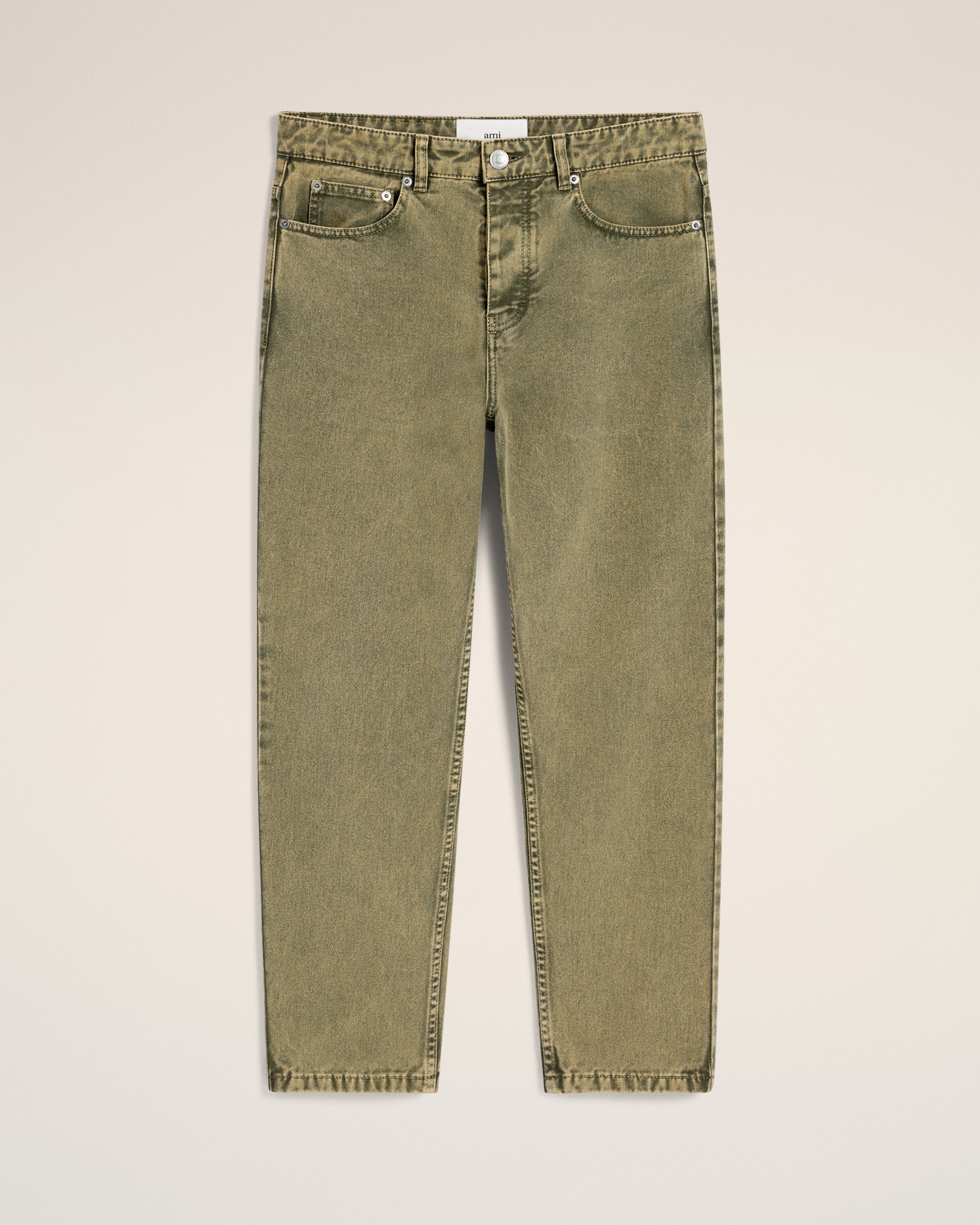 Tapered fit jeans in washed colored cotton twill. Tapered fit 18 cm bottom leg width (size 30) Classic waist Carrot leg Five pockets Buttoned fly Denim metal rivets and buttons in nickel color "ami alexandre mattiussi" patch on the back Tonal topstitches Made in Portugal (with love) REF: HTR103.DE0064.375 SIZE & FIT Fits true to size. Take your normal size. Model is 1m85 / 6'1" and is wearing a size 30. COMPOSITION & CARE GUIDE 100% Cotton Machine wash at 30°C Chlorine prohibited Do not tumble dry Cool iron Dry clean possible Wash inside out Wash with similar colours