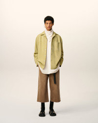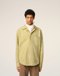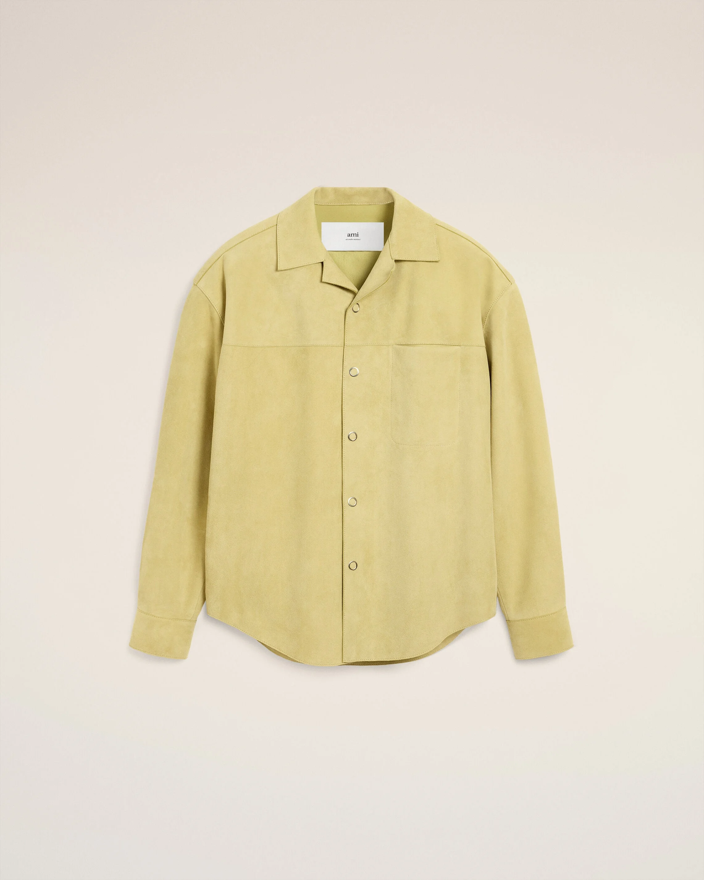 Overshirt in goat suede leather. Unisex product Goat leather Press buttons eyelet head Metal eyelets engraved "ami paris" Ami de Coeur topstitched embossed logo on the back under collar Unlined 80 cm middle back length (size M) 78 cm middle back length (size XS) Made in Turkiye (with love) REF: USH790.LH0059.399 SIZE & FIT This style is unisex. For man, take your normal size. For woman, take one size down than your usual size. Man model is 187 cm / 6"2 and is wearing a size M. Woman model is 175 cm / 5"8 and is wearing a size XS. COMPOSITION & CARE GUIDE Main Material : 100% Goat Leather Do not wash Chlorine prohibited Do not tumble dry Do not iron Do not dry clean Dry clean by a leather specialist