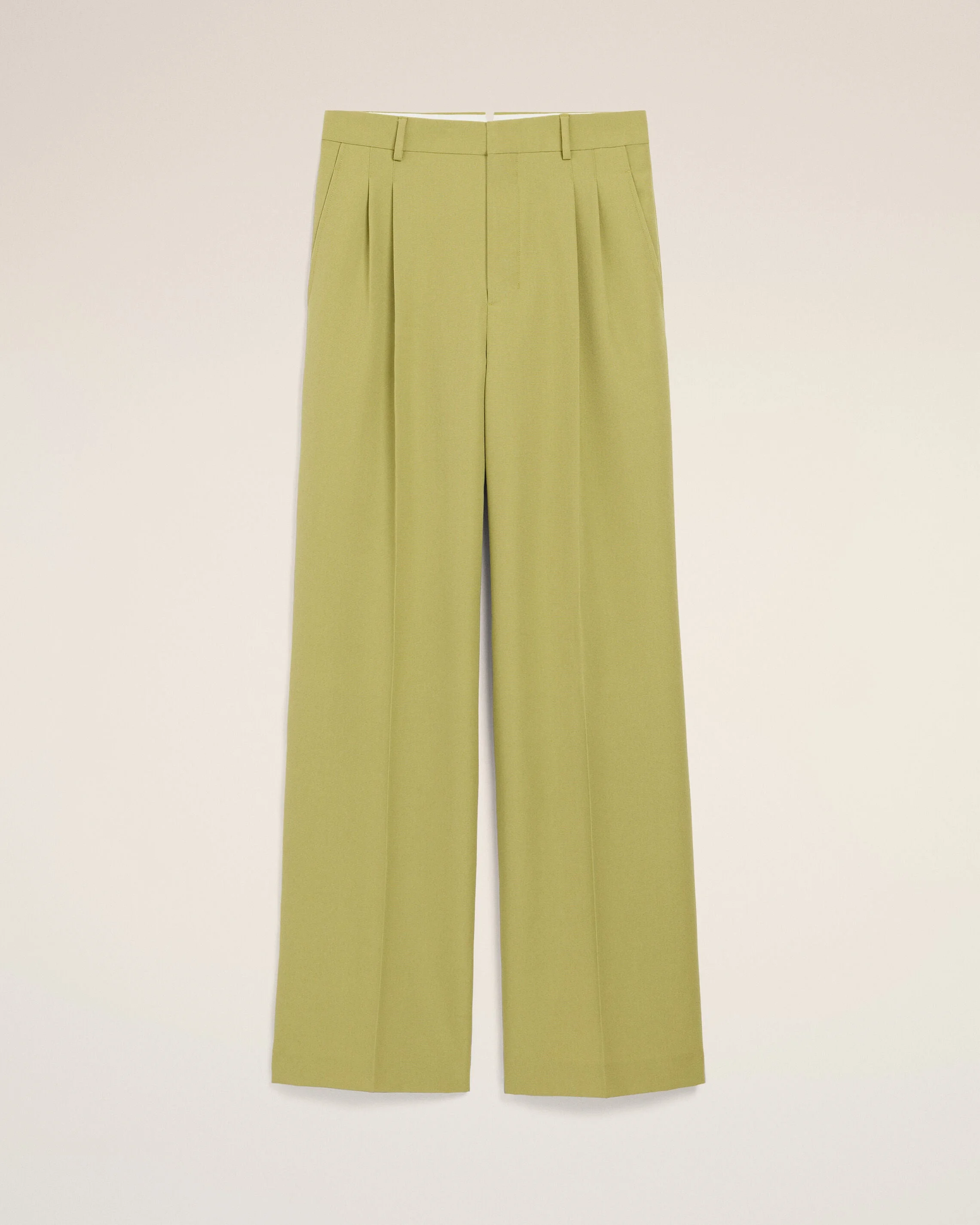 GREEN NEW WOOL LOW WAIST WIDE TROUSERS