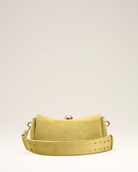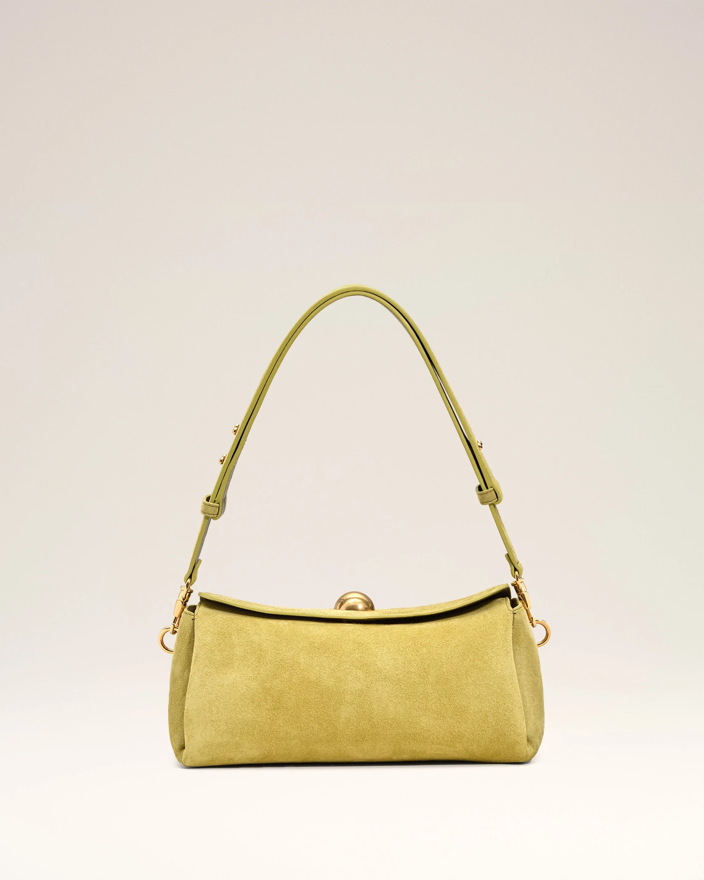 Carrousel bag in suede leather and smooth leather. Unisex product Cow leather Adjustable and removable leather strap, crossbody or shoulder carry Magnetic flap closure Metal hardware in vibrated brass color One main compartment with an inside patched pocket Suede leather lining Half sphere in metal with engraved "ami alexandre mattiussi" logo Size: 26 x 12 x 10.5 cm Made in Spain (with love) REF: ULL027.AL0136.399 SIZE & FIT Size: 26 x 12 x 10.5 cm COMPOSITION & CARE GUIDE Main Material : 100% Cow Leather Main Lining : 100% Calfskin Our leathergoods are made from delicate materials. To keep the original aspect of the leather as long as possible, please avoid contact with abrasive and oily substances. Make sure not to expose them at the direct light for too long and to wipe them with a soft and dry cloth when wet. To avoid deformations, insure to not overload them. Keep them in their dust bag and safe from humidity.
