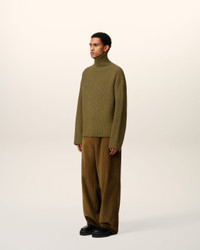 GREEN WOOL FUNNEL NECK SWEATER
