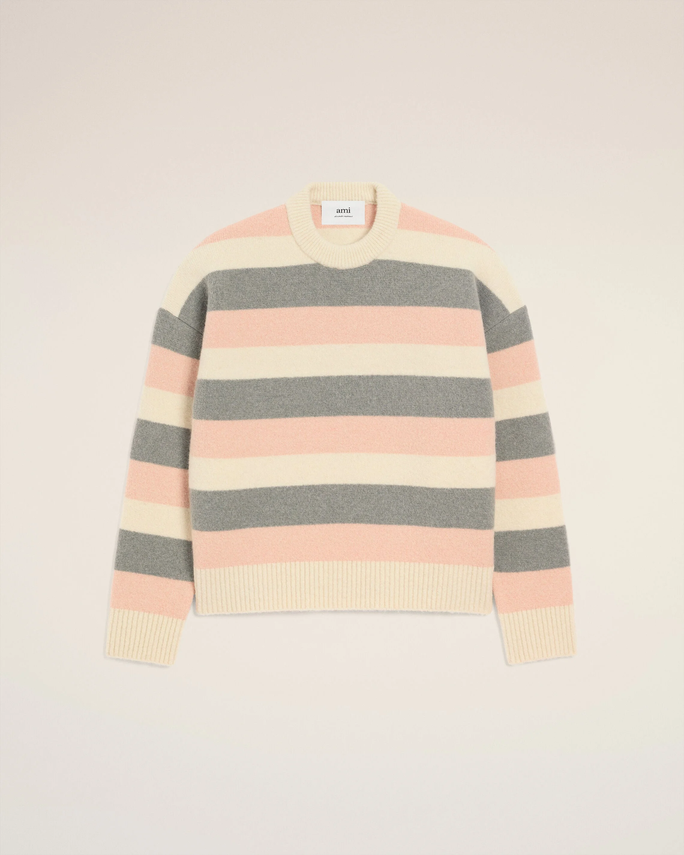 Sweater in striped alpaca knit. Unisex product Striped Crewneck Interlock stitch "ami" leather label 64 cm center back length (size M) 55 cm center back length (size XS) Made in Portugal (with love) REF: UKS841.KN0126.0544 SIZE & FIT This style is unisex. For man, take your normal size. For woman, take one size down than your usual size. Man model is 184 cm / 6"0 and is wearing a size M. Woman model is 181 cm / 5"11 and is wearing a size XS. COMPOSITION & CARE GUIDE Main Material : 50% Alpaca 25% Wool 23% Polyamide 2% Elastane Hand wash low temperature Chlorine prohibited Do not tumble dry Flat drying in the shade Cool iron Dry clean gentle Contains non-textile parts of animal origin