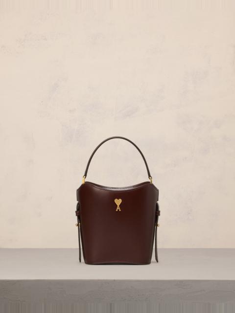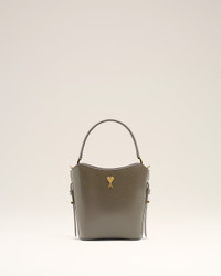 Mini Paris Paris bucket bag in glazed leather. Unisex product Calfskin Adjustable leather strap, hand, shoulder or crossbody carry Metal hardware in vibrated brass color One central compartment with lambskin drawstring pouch Suede lambskin lining Ami de Coeur stud Size: 14 x 17 x 5 cm, width at the top 17 cm Made in Morocco (with love) REF: ULL012.AL0139.0516 SIZE & FIT Size: 14 x 17 x 5 cm COMPOSITION & CARE GUIDE Main Material : 100% Calfskin Secondary Material : 100% Lamb Leather Main Lining : 100% Lamb Leather Do not wash
