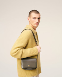 Paris Paris bag in glazed leather. Unisex product Calfskin Leather Adjustable leather strap, crossbody or shoulder carry Metal hardware in vibrated brass color One central compartment with a patched pocket and one front compartment Suede lambskin lining Ami de Coeur stud Size: 20 x 15 x 4.5 cm Made in Morocco (with love) REF: ULL717.AL0139.0516 SIZE & FIT Size: 20 x 15 x 4.5 cm COMPOSITION & CARE GUIDE Main Material : 100% Calfskin Main Lining : 100% Lamb Leather Do not wash