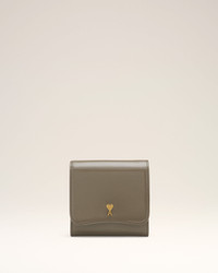 Paris Paris compact wallet in glazed leather. Unisex product Calfskin Snap button fastening Metal hardware in vibrated brass color One central zipped coin pocket, six card compartments and one front compartment One side note compartment Cotton canvas lining Ami de Coeur stud Size: 11 x 10 cm Made in Morocco (with love) REF: USL708.AL0139.0516 SIZE & FIT Size: 11 x 10 cm COMPOSITION & CARE GUIDE Main Material : 100% Calfskin Main Lining : 100% Cotton Do not wash