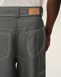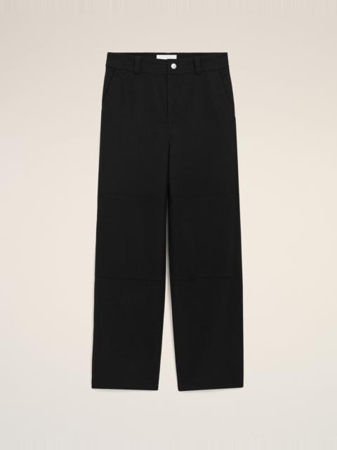 Workwear trousers in wool canvas. Loose fit Regular waist Large leg Workwear details Zipped fly Denim metal buttons in nickel color at belt "ami alexandre mattiussi" paper jacron on the back Contrasted topstitches Made in Romania (with love) REF: HTR864.WV0195.0516 SIZE & FIT This item is designed to be worn lose. Take your normal size. Man model is 182 cm / 5"9 and is wearing a size M. COMPOSITION & CARE GUIDE Main Material : 100% New Wool Main Lining : 50% Polyester, 50% Cotton Chlorine Prohibited Do Not Tumble Dry Dry Clean Gentle Cool Iron Do Not Wash