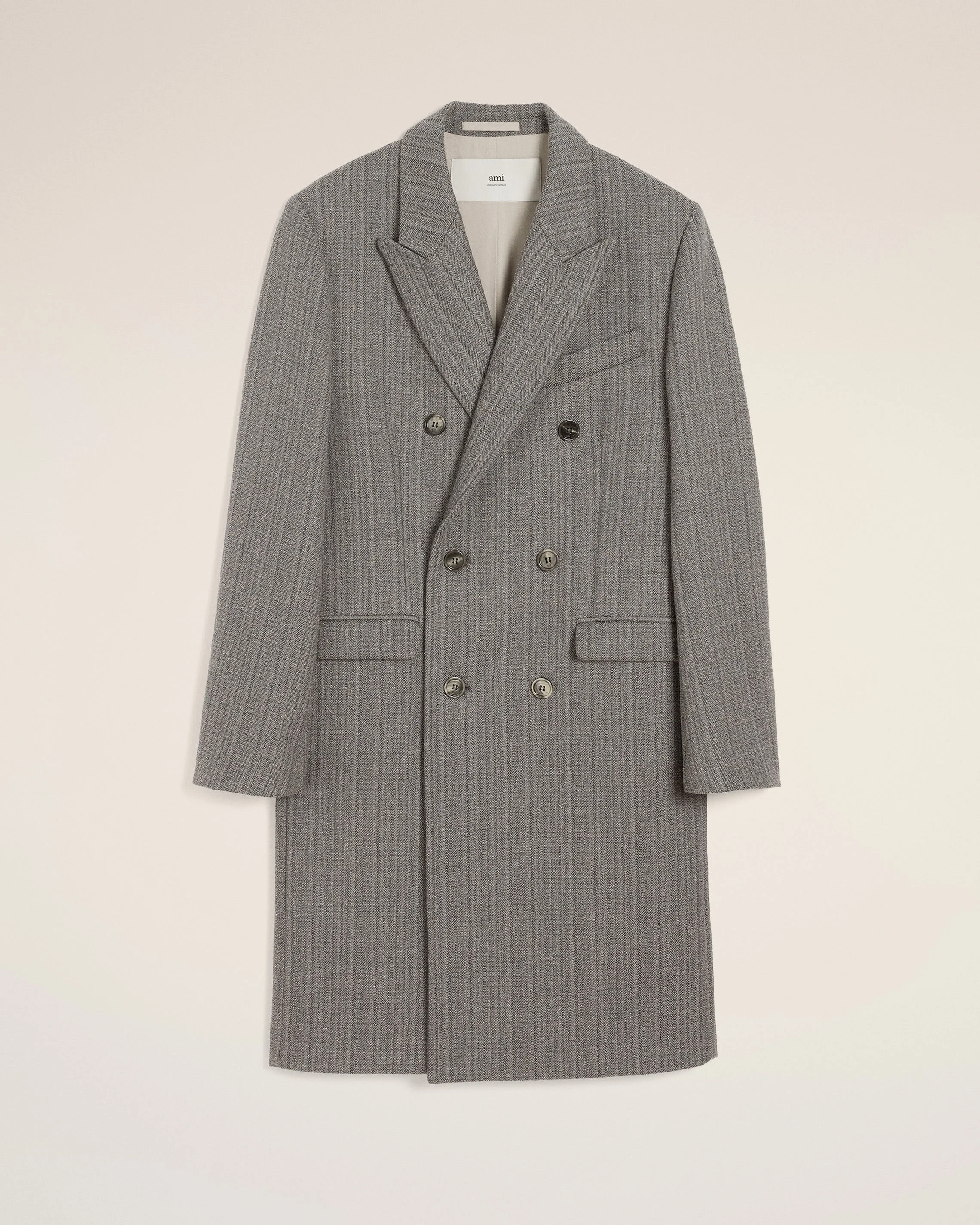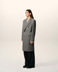 Double breasted coat in double wool herringbone pattern. Classic fit Notch collar Heeringbone pattern Horn buttons Single breasted Inside pockets Welt chest pockets Flap pockets Buttoned bottom sleeves Slit on the middle back AMF stitches on the collar, lapel and flap pockets Ton on ton lining: body Striped lining: sleeves 105 cm center back length (size 48) Made in Moldava (with love) REF: HCO110.WV0080.0711 SIZE & FIT Fits true to size. Take your normal size. Model is 184 cm / 6"0 and is wearing a size 48. COMPOSITION & CARE GUIDE Main Material : 74% New Wool 15% Polyamide 7% Wool 3% Silk 1% Polyester Body Lining : 50% Polyester 50% Cotton Sleeves Lining : 54% Acetate 45% Viscose 1% Polyester Pocket Lining : 65% Polyester 35% Cotton Do not wash Chlorine prohibited Do not tumble dry Cool iron Dry clean gentle