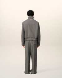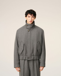 Harrington jacket in double wool herringbone pattern. Unisex product Herringbone pattern High collar with horn buttons with metal eyelets Nickel double metal zipper with "ami" engraved puller Adjustable cuffs with horn buttons with metal eyelets Side flap pockets, and internal pocket with invisible snap buttons Elasticated waist "ami alexandre mattiussi" leather label on the back Fully lined and padded 62 cm center back length (size XS) 64 cm center back length (size M) Made in Romania (with love) REF: UJK822.WV0080.0711 SIZE & FIT This style is unisex. For man, take your normal size. For woman, take one size down than your usual size. Man model is 183 cm / 6"0 and is wearing a size M. Woman model is 181 cm / 5"11 and is wearing a size XS. COMPOSITION & CARE GUIDE Main Material : 74% New Wool 15% Polyamide 7% Wool 3% Silk 1% Polyester Padding : 100% Polyethylene Main Lining : 50% Polyester 50% Cotton Pocket Lining : 100% Cotton Do not wash Chlorine prohibited Do not tumble dry Cool iron Dry clean gentle