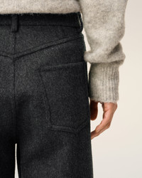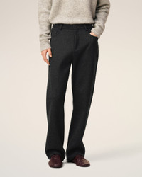 Large fit trousers in double faced bicolour wool. Large fit Classic waist Large leg Zipped fly 5 pockets Covered snap button in main fabric Embossed Ami de Coeur on the back pocket Inside of the fabric with a contrasted color Water repellent fabric 24 cm bottom leg width (size M) Made in Romania (with love) REF: HTR836.WO0009.021 SIZE & FIT This item is designed to be worn lose. Take your normal size. Model is 186 cm / 6"1 and is wearing a size M. COMPOSITION & CARE GUIDE Main Material : 98% Wool 2% Silk Pocket Lining : 100% Cotton Do not wash Chlorine prohibited Do not tumble dry Cool iron Dry clean gentle