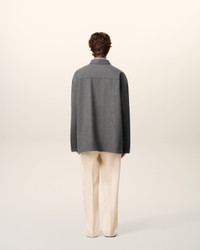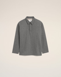 Long sleeved polo shirt in wool flannel. Unisex product Oversized fit Classic collar with hidden button placket Long sleeves Horn buttons Embossed Ami de Coeur under collar on center back Center back length : 81 cm (size XS) Center back length: 83 cm (size M) Made in Portugal (with love) REF: UPL781.WV0058.050 SIZE & FIT This style is unisex. For man, take your normal size. For woman, take one size down than your usual size. Man model is 186 cm / 6"1 and is wearing a size M. Woman model is 181 cm / 5"11 and is wearing a size XS. COMPOSITION & CARE GUIDE Main Material : 100% New Wool Chlorine prohibited Do not tumble dry Dry clean gentle Cool iron Do not wash