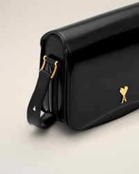 Paris Paris bag in glazed leather. Unisex product Calfskin Leather Adjustable leather strap, crossbody or shoulder carry Metal hardware in vibrated brass color One central compartment with a patched pocket and one front compartment Suede lambskin lining Ami de Coeur stud Size: 20 x 15 x 4.5 cm Made in Morocco (with love) REF: ULL717.AL0139.001 SIZE & FIT Size: 20 x 15 x 4.5 cm COMPOSITION & CARE GUIDE Main Material : 100% Calfskin Main Lining : 100% Lamb Leather Do not wash