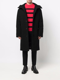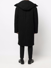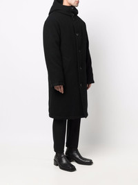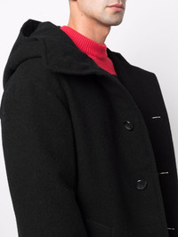 hooded single-breasted coat AMI Paris continues to pride themselves in creating wardrobe pieces that don't subscribe to seasonal trends. This hooded coat demonstrates the brand's focus with its versatile black shade along with a classic single-breasted silhouette. Imported Composition Wool 100% SIZE & FIT Model measurements Height 6 ft 1 in(1.85 m) Bust/Chest 37.79 in(96 cm) Hips 37.4 in(95 cm) Waist 30.7 in(78 cm) FittingInformation This piece fits true to size. We recommend you get your regular size Cut for a loose fit Made with a mid-weight non-stretch fabric