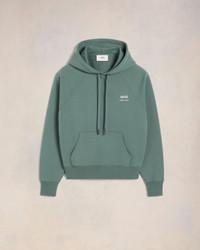 Hoodie in heavy loopback organic cotton fleece. Boxy fit Unisex product 61 cm center back length (XS size) 65 cm center back length (M size) "ami alexandre mattiussi" print Ami de Coeur embroidery under back neckline Raglan sleeves Tonal color metal ends and "ami" engraved eyelets Made in Portugal (with love) REF : USW224.747.4013 SIZE & FIT This style is unisex. For man, take your normal size. For woman, take one size down than your usual size. COMPOSITION & CARE GUIDE 100% Organic Cotton Chlorine prohibited Machine wash at 30°C gentle Do not tumble dry Do not dry clean Cool iron
