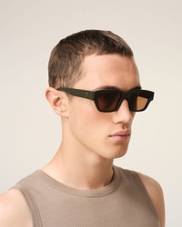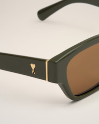 Sunglasses in acetate. Khaki acetate frame Brown lens Gold Ami de Coeur signature on temples Gold "ami alexandre mattiussi" signature on the inside of the right temple Length of temples : 14,5 cm Lens width : 5,2 cm Bridge lenght : 2,0 cm Maximum UV protection UV400 Lens category : 3 Compatible with corrective lens Made in China (with love) REF: UGL509.AM0004.350 SIZE & FIT Length of temples : 14,5 cm Lens width : 5,2 cm Bridge lenght : 2,0 cm COMPOSITION & CARE GUIDE 100% Acetate Wipe with a damp cloth Do not wash