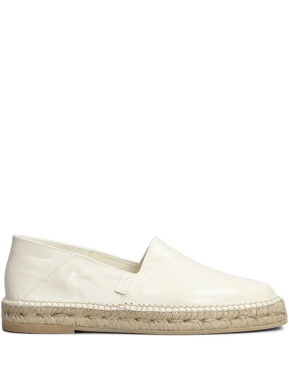 leather espadrilles Highlights - Ecru - Mini logo tag - Almond toe - Rubber sole Imported Composition Sole: Rubber 100% Outer: Leather 100% Lining: Leather 100%