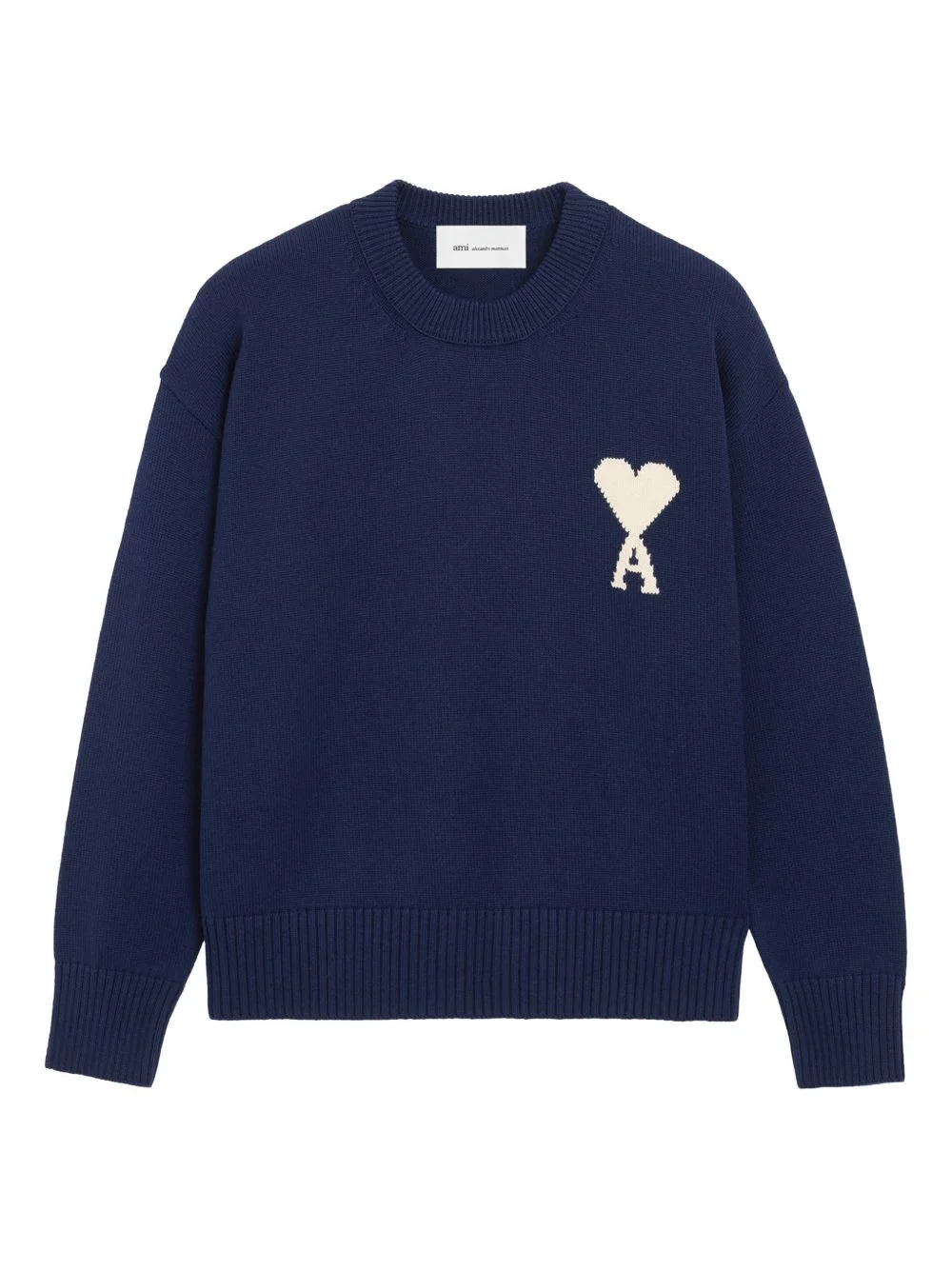 logo-detail sweater Highlights - Ink blue - Intarsia knitted - Heart motif - Crew neck - Ribbed hem Made in Italy Composition Wool 53%, Cotton 47% Washing instructions Hand Wash