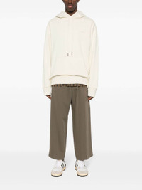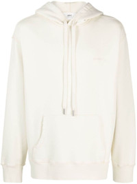 ivory white cotton embroidered logo at the chest drawstring hood long sleeves front pouch pocket ribbed cuffs and hem When buying this unisex item, keep in mind that it is graded in standard men's sizing. Size & Fit Model Measurements: Bust: 0cm Height: 0cm Hips: 0cm Waist: 0cm