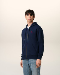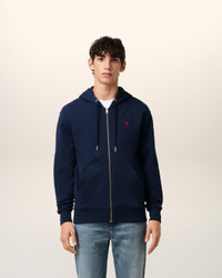 Zipped Ami de Coeur hoodie in loopback organic cotton fleece. Classic fit Unisex product 61 cm center back length (size XS) 69 cm center back length (size M) Red Ami de Coeur chest embroidery Tonal "AMI" embroidery under back neckline Nickel color metal ends and engraved eyelets Nickel color metal zipper Puller ami engraved Made in Portugal (with love) REF: BFUSW435.730.430 SIZE & FIT This style is unisex. For man, take your normal size. For woman, take one size down than your usual size. Man model is 1m83 / 6'0" and is wearing a size M. Woman model is 1m77 / 5'10" and is wearing a size XS. COMPOSITION & CARE GUIDE 100% Cotton Chlorine prohibited Machine wash at 30°C gentle Do not tumble dry Do not dry clean Cool iron