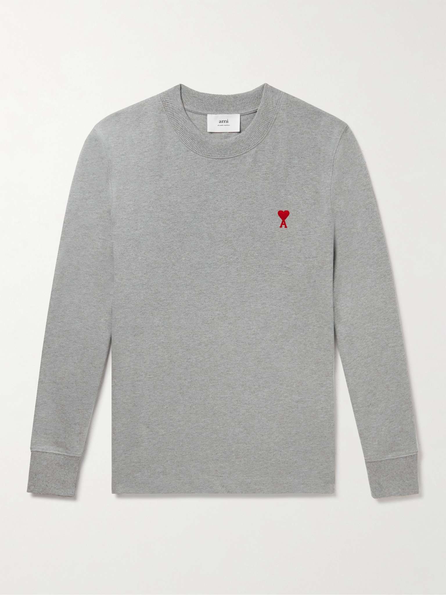 AMI PARIS' 'Ami de Coeur' logo is actually a paraph Alexandre Mattiussi has used to sign off letters, drawings and designs since childhood. Embroidered on the chest, it marks this cotton-jersey T-shirt as one of his own, too. Size & Fit - Fits true to size. Take your normal size - This T-shirt is designed for a relaxed cut - Mid-weight, slightly stretchy fabric - Model wears a M - Model measures: chest 38"/ 96cm, height 6'1"/ 185cm Details & Care - Grey cotton-jersey - 100% cotton - Machine wash - This item has been imported