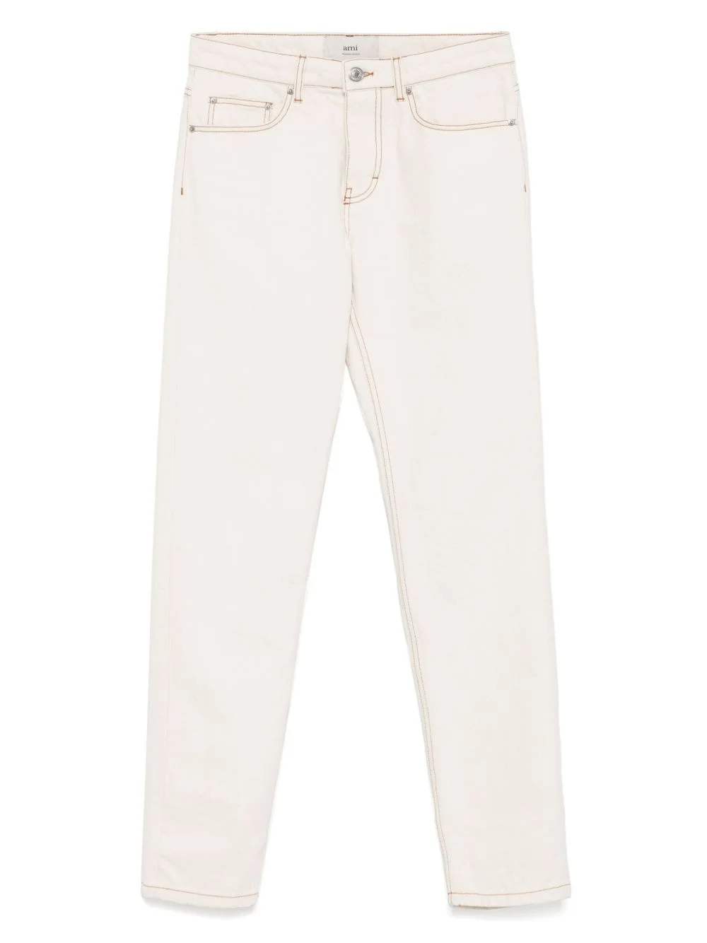 logo-patch jeans Highlights - Ecru - Front button fastening - Belt loops - Classic five pockets - Contrast stitching Imported Composition Cotton 100% SIZE & FIT Model measurements Height 6 ft 2 in(1.87 m) Bust/Chest 37.79 in(96 cm) Hips 37.79 in(96 cm) Waist 30.31 in(77 cm) FittingInformation Designed with a straight leg, these jeans allow for an unrestricted and comfortable fit over the leg Sturdy and hard-wearing, this denim piece offers no stretch