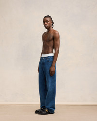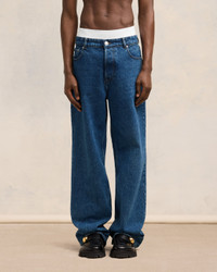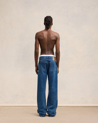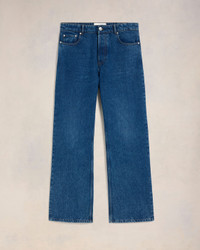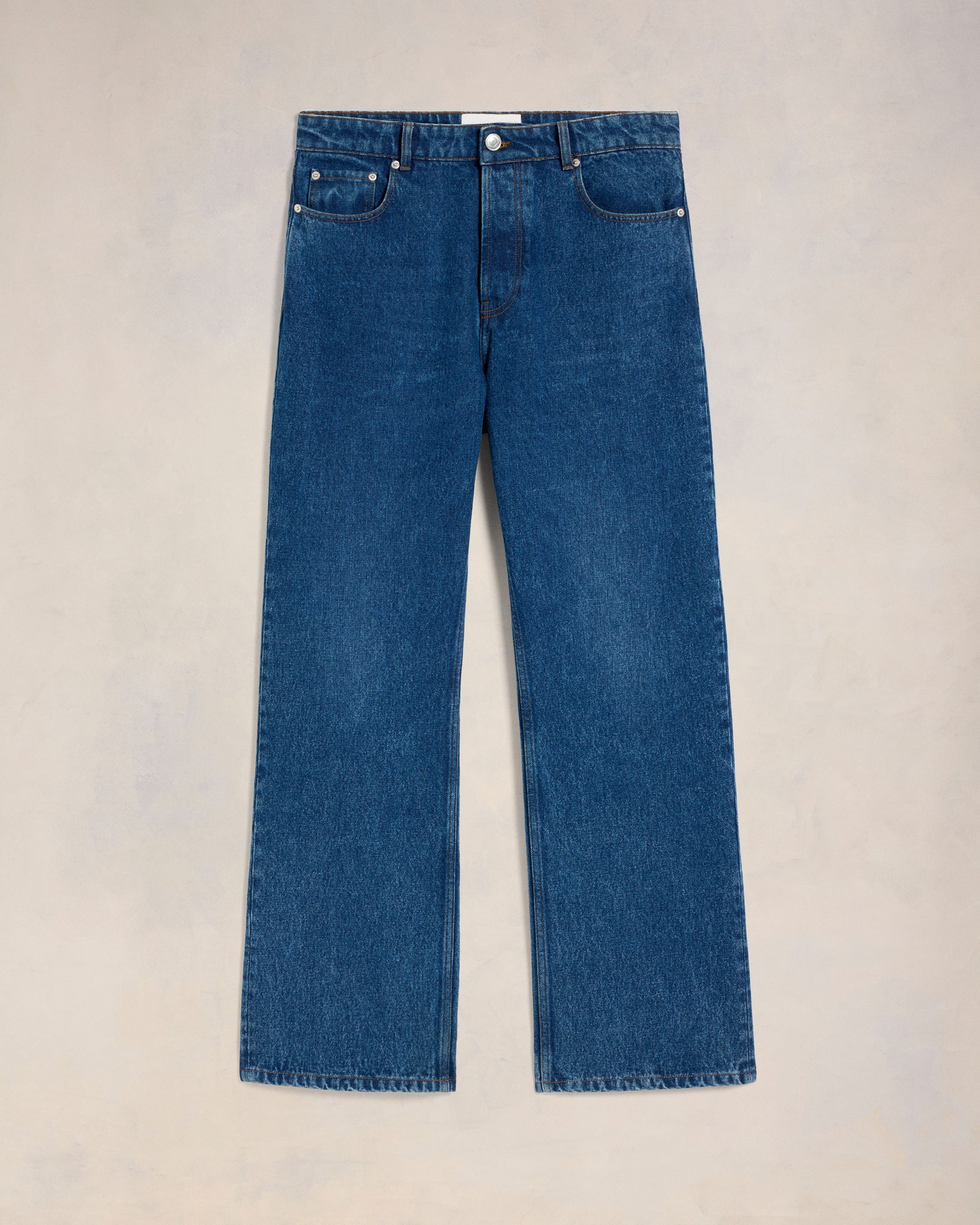Large fit jeans in used indigo denim. Large fit 27 cm bottom leg width (size 30) Classic waist Large leg 5 pockets Buttoned fly Metal studs and buttons in nickel color "ami alexandre mattiussi" patch on the back Tobacco topstitches Made in Portugal (with love) REF : HTR450.DE0031.480 SIZE & FIT Fits true to size. Take your normal size. Model is 1m83 / 6'0" and is wearing a size 30. COMPOSITION & CARE GUIDE 100% Cotton Machine wash at 30°C Chlorine prohibited Do not tumble dry Line dry in shade Medium iron Dry clean possible