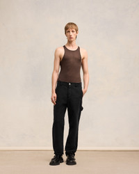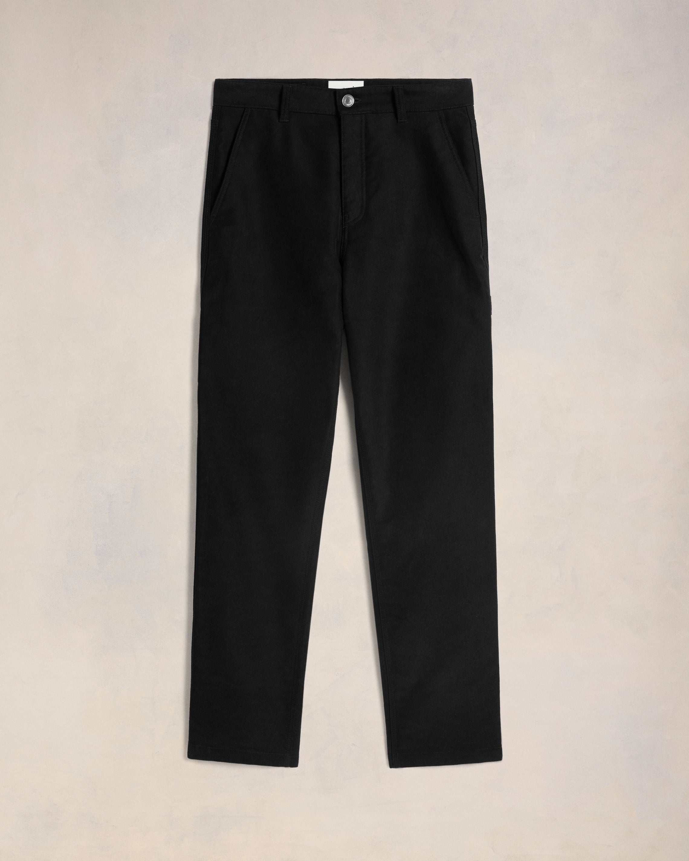 Worker trousers in cotton moleskin. Straight fit 20 cm bottom leg width (size M) Classic waist Italian pockets Back patch pockets Buttoned fly Metal buttons in nickel color "ami alexandre mattiussi" patch on the back Made in Portugal (with love) REF : HTR304.CO0083.001 SIZE & FIT Fits true to size. Take your normal size. Model is 1m87 / 6'2" and is wearing a size M. COMPOSITION & CARE GUIDE 100% Cotton Hand wash low temperature Chlorine prohibited Do not tumble dry Medium iron Dry clean petroleum solvent only on a gentle process
