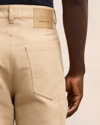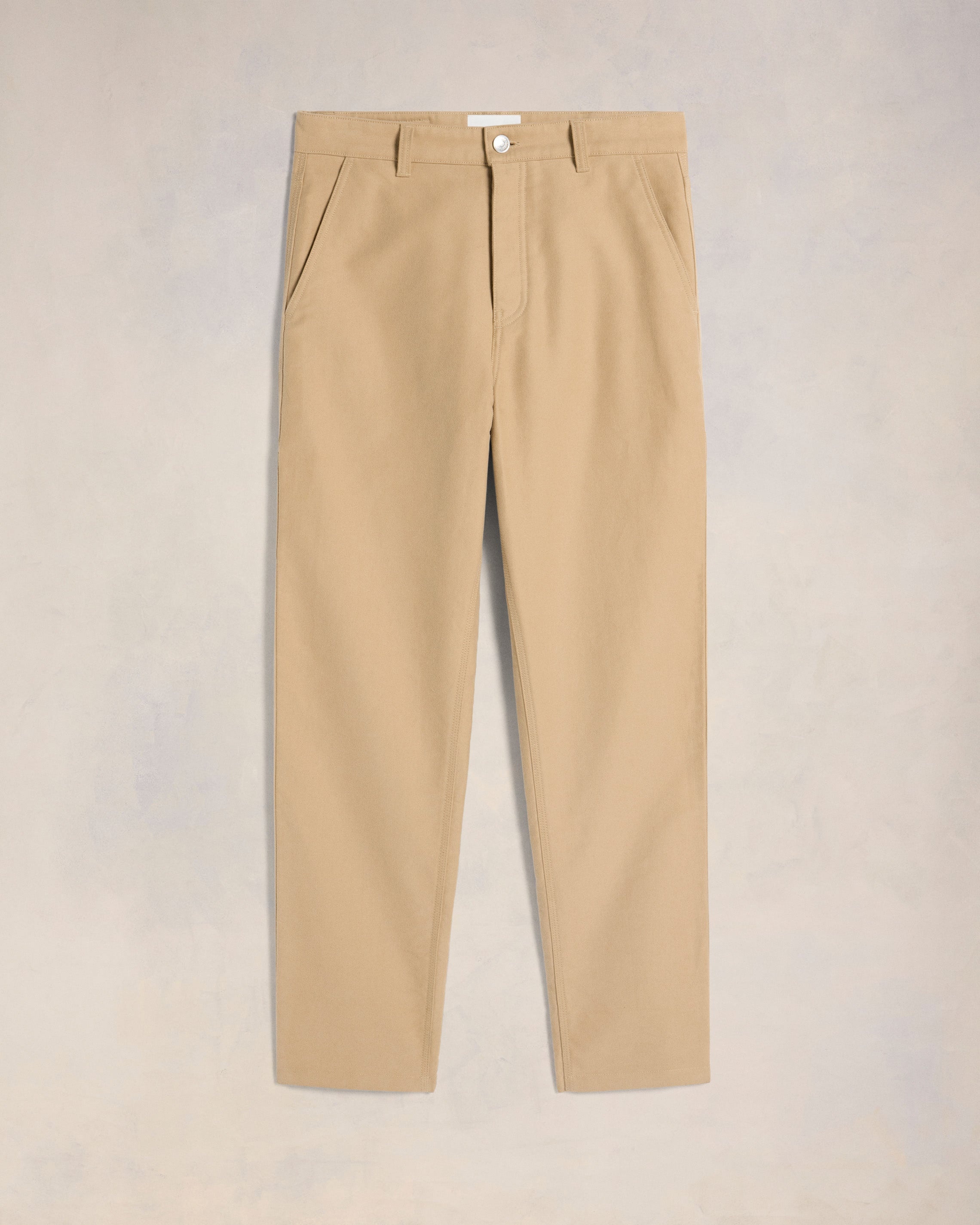 Worker trousers in cotton moleskin. Straight fit 20 cm bottom leg width (size M) Classic waist Italian pockets Back patch pockets Buttoned fly Metal buttons in nickel color "ami alexandre mattiussi" patch on the back Made in Portugal (with love) REF : HTR304.CO0083.255 SIZE & FIT Fits true to size. Take your normal size. Model is 1m85 / 6'1" and is wearing a size M. COMPOSITION & CARE GUIDE 100% Cotton Hand wash low temperature Chlorine prohibited Do not tumble dry Medium iron Dry clean petroleum solvent only on a gentle process