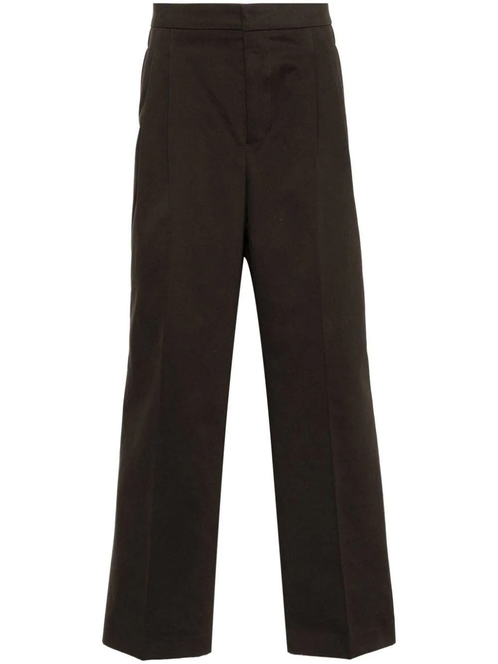 loose-cut tailored trousers Highlights - Coffee brown - Cotton - Pleat detailing - Pressed crease - Two side slit pockets - Two rear button-fastening jetted pockets - Straight leg - Front button fly and hook fastening Imported Composition Lining: Polyester 100% Outer: Cotton 100% SIZE & FIT Model measurements Height 6 ft 2 in(1.88 m) Bust/Chest 36.61 in(93 cm) Hips 35.82 in(91 cm) Waist 27.95 in(71 cm) FittingInformation Designed with a wide leg, offering a loose and roomy fit Made from a midweight non-stretch fabric This piece fits true to size – take your usual size
