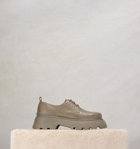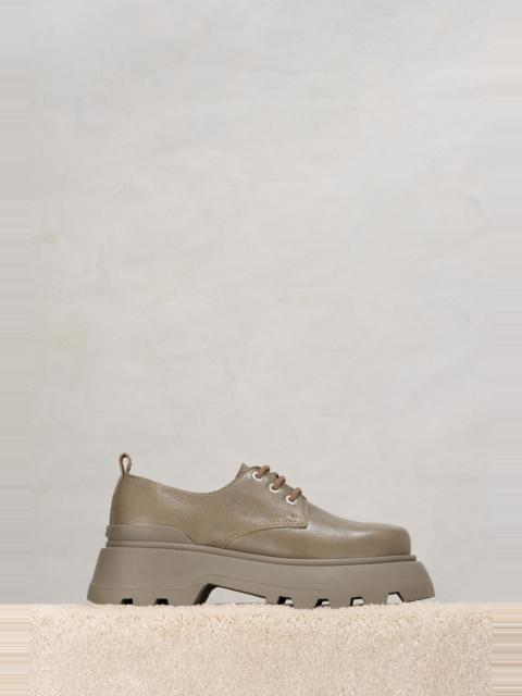 Product Description lace-up leather loafers from AMI Paris featuring olive green, leather, round toe, front lace-up fastening, branded insole, low heel and ridged rubber sole. Lug-sole lace-up derbies in textured leather. - Ami Paris signature eyelets - Embossed Ami alexandre mattiussi logo on the insole - Exclusive sole developed by Ami Paris - Made in Portugal (with love) REF USV018.AL0023281 Size & Fit Fits true to size. Take your normal size. Materials & Care Instructions 100% Leather Find out more about product traceability.