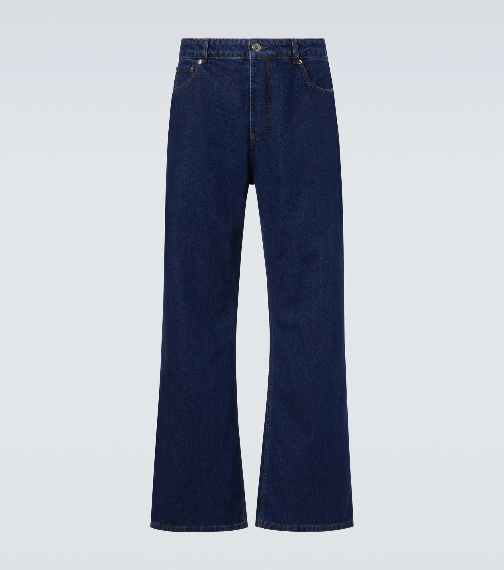 Ami Paris' Parisian nonchalance is the key ingredient for authentic and cool style. These jeans are cut from classic blue denim to a subtly flared wide-leg silhouette with a mid-rise waistline. Product Details - Material: 100% cotton - Care instructions: machine wash at 30 degrees - Made in Portugal - Designer color name: Indigo - Item color: blue - Belt loops - Pockets: five pockets - Closure: button fastening - Item number: P01069469 Size & Fit - Fits large to size - we recommend trying one size smaller - Non-stretchy fabric - Wide-leg - Mid-rise - The model in the picture is 185cm-6'1" and wearing a size 31