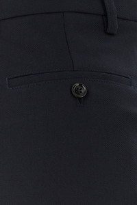 Pant realized pure wool characterized by inverted pleats. - Belt loops at the waist - Concealed buttons and hook closure - Slant pockets and two slit pockets at the back DETAILS Midnight blue wool pant Exterior: 100% Virgin wool Made in portugal Sample size: 36