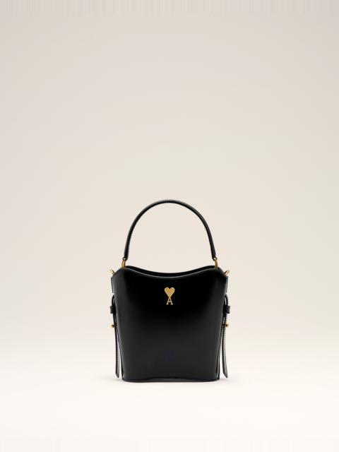 Mini Paris Paris Bucket Bag in smooth leather. Suede lambskin lining Ami de Coeur stud One central compartment with lambskin drawstring pouch Adjustable leather strap, hand, shoulder or crossbody carry Metal hardware in vibrated brass color Size: 12.5x17x5 cm, width at the top 17 cm Made in Morocco (with love) REF : ULL012.AL0043.222 SIZE & FIT Size: 12.5x17x5 cm, width at the top 17 cm COMPOSITION & CARE GUIDE 100% Calf Leather Our leathergoods are made from delicate materials. To keep the original aspect of the leather as long as possible, please avoid contact with abrasive and oily substances. Make sure not to expose them at the direct light for too long and to wipe them with a soft and dry cloth when wet. To avoid deformations, insure to not overload them. Keep them in their dust bag and safe from humidity.