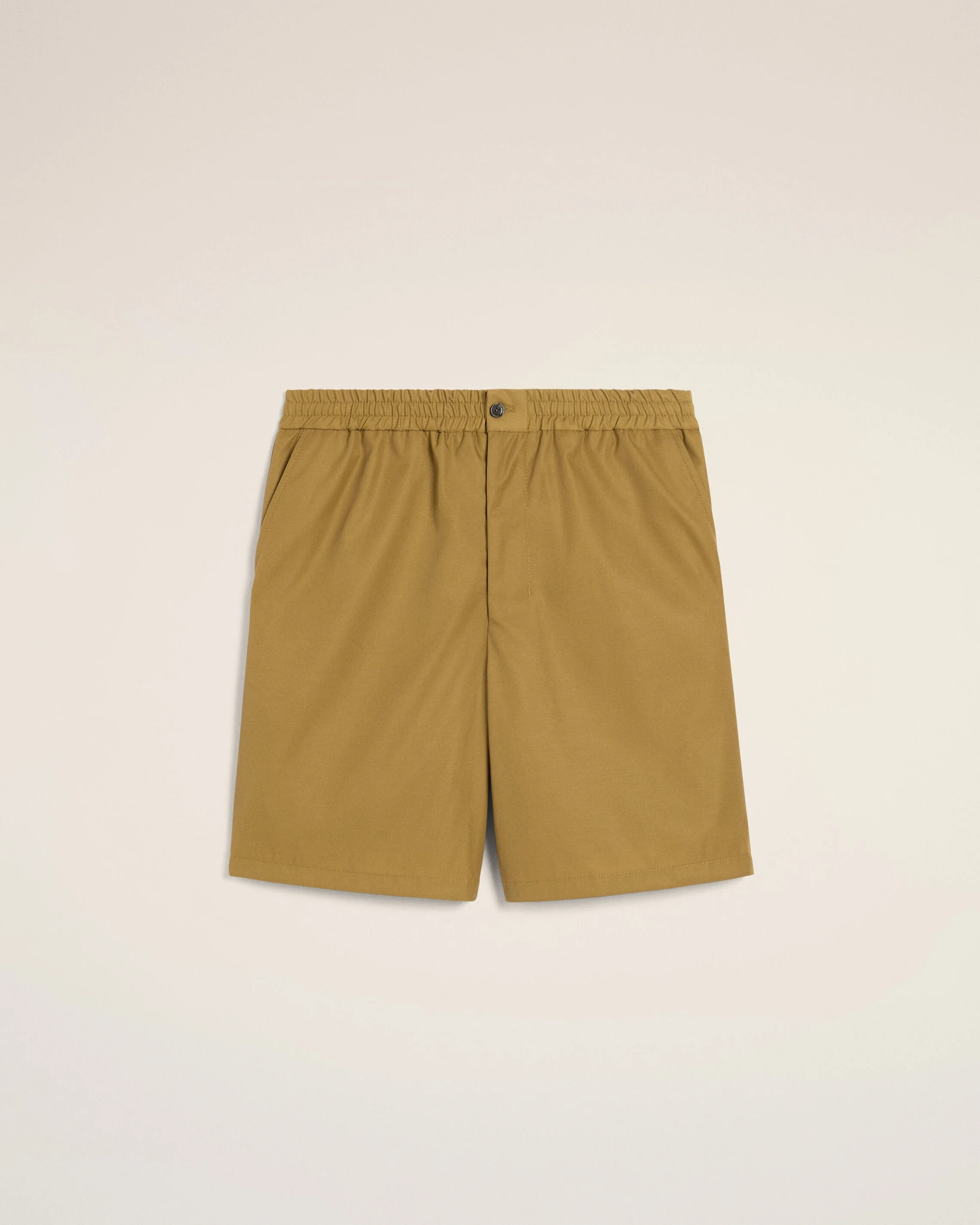 Elasticated waist shorts in technical twill in nylon and cotton. Classic fit 33 cm leg opening (size M) Water-repellent fabric Elasticated belt with button Internal waist drawstring Buttoned fly Patch pocket on the back "ami alexandre mattiussi" metal lettering signature on the chest Made in Romania (with love) REF: HSO304.PA0007.202 SIZE & FIT Fits true to size. Take your normal size. Model is 1m86 / 6'1" and is wearing a size M. COMPOSITION & CARE GUIDE 70% Polyamide, 30% Cotton Do not wash Chlorine prohibited Do not tumble dry Cool iron Dry clean petroleum solvent only on a gentle process